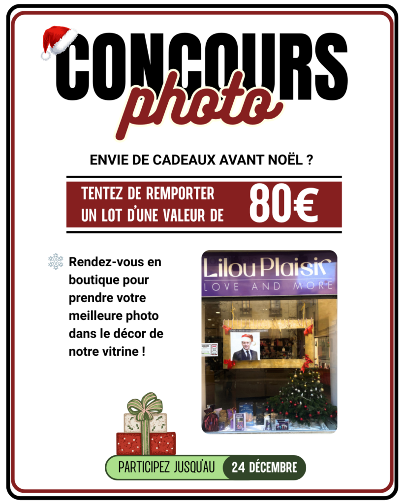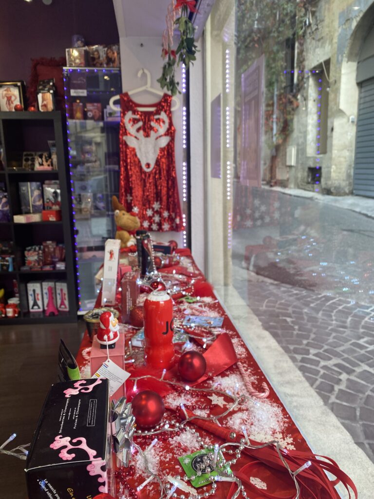 Noël est enfin arrivé chez Lilou Plaisir. Nous avons soigneusement décoré la boutique pour vous plonger dans l’ambiance des fêtes. Vous savez que nous aimons nous démarquer, et cette année, nous avons créé une vitrine qui ne vous laissera pas indifférent.